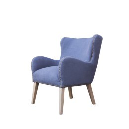 Кресло S0117-1D/blue#B126, обивка кожа, ножки дерево, ROOMERS FURNITURE