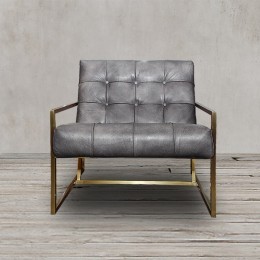 Полукресло C0197-1D/greyB#67, обивка кожа, ножки нержавеющая сталь, grey/matte gold, ROOMERS FURNITURE
