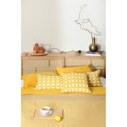 Чехол на подушку из фактурного хлопка горчичного цвета с контрастным кантом из коллекции essential, 30х50 см (69855)