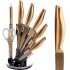 Набор MAYER&BOCH включает в себя 5 ножей разного размера, мусат (ножеточку), ножницы и подставку. Лезвия ножей выполнены из высококачественной нержавеющей стали с золотистым напылением, имеют гладкую и легко очищаемую поверхность, устойчивы к повреждениям и окислению. Набор ножей идеально подойдет для резки как мяса и рыбы, так и фруктов и овощей. Прочная эргономичная рукоятка каждого изделия, выполненная из нержавеющей стали, удобно ложится в ладонь, обеспечивая безопасную работу, комфортное положение в руке и надежный захват. Все предметы набора компактно размещаются на оригинальной прозрачной акриловой подставке-"веере". Набор MAYER&BOCH включает все необходимые ножи для ежедневного приготовления пищи, а его стильный современный дизайн украсит интерьер вашей кухни. Подходит для мытья в посудомоечной машине."