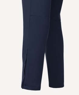 В модели все продумано для удобства спортсмена. В районе колена предусмотрены вытачки для лучшей посадки и свободы движений, снизу расположены застежки-молнии, позволяющие регулировать ширину штанины. Брюки дополнены карманами, застегивающимися на молнии.