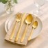 Материалы: нержавеющая сталь 430 (18/0). Длина ножа: 23,5 см. Вес ножа: 68 г. Длина вилки: 21 см. Вес вилки: 54,5 г. Длина ложки: 21,5 см. Вес ложки: 65 г. Длина чайной ложки: 15 см. Вес чайной ложки: 24,5 г. Цвет: золотистый. Полировка: матовая. Количество предметов в наборе: 24 шт.