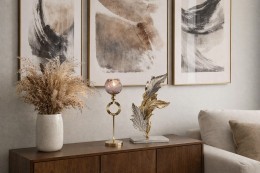 Панно Exhibit – прекрасный способ освежить интерьер и создать в помещении уютную атмосферу. Конструкция имеет вид горизонтальной планки, к которой подвешены фоторамки разных размеров, удерживаемые при помощи специальных зажимов. Возможность чередования изображений с альбомной и портретной ориентацией позволяет проявлять фантазию и создавать свои уникальные сюжеты из фотографий, открыток, писем и любых других предметов. Такой оригинальный коллаж отлично смотрится на стене в любой из комнат, а также подходит для украшения лестничного пролета. Для установки панно потребуется просверлить в стене всего два отверстия.